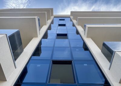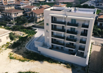 Il progetto ha riguardato la realizzazione di un nuovo edificio residenziale concepito secondo criteri contemporanei di sostenibilità, efficienza energetica e qualità costruttiva. L’intervento si inserisce in modo armonico nel contesto urbano, contribuendo alla riqualificazione dell'area attraverso un linguaggio contemporaneo e soluzioni progettuali funzionali. Si distingue per l’adozione di un sistema di tamponamento a secco, impiegato sia per le pareti perimetrali esterne sia per le partizioni interne, soluzione che consente elevati standard prestazionali in termini di isolamento termoacustico, rapidità esecutiva e flessibilità distributiva. L’edificio è progettato come struttura completamente elettrica, eliminando l’utilizzo di combustibili fossili e riducendo in modo significativo l’impatto ambientale complessivo. L’edificio si sviluppa su più livelli ed è composto da unità abitative progettate per garantire massima vivibilità, con una distribuzione interna razionale e flessibile. Gli ambienti risultano ampi e luminosi grazie a un attento studio dell’orientamento e all’utilizzo di ampie superfici finestrate, che favoriscono l’illuminazione naturale e la continuità visiva tra interno ed esterno. Le finiture interne ed esterne sono state selezionate con cura, privilegiando materiali di qualità e soluzioni estetiche moderne, in grado di coniugare eleganza e durabilità nel tempo. Un edificio che rappresenta un equilibrio tra estetica, innovazione e sostenibilità, rispondendo alle esigenze abitative contemporanee e valorizzando il contesto in cui si inserisce.
